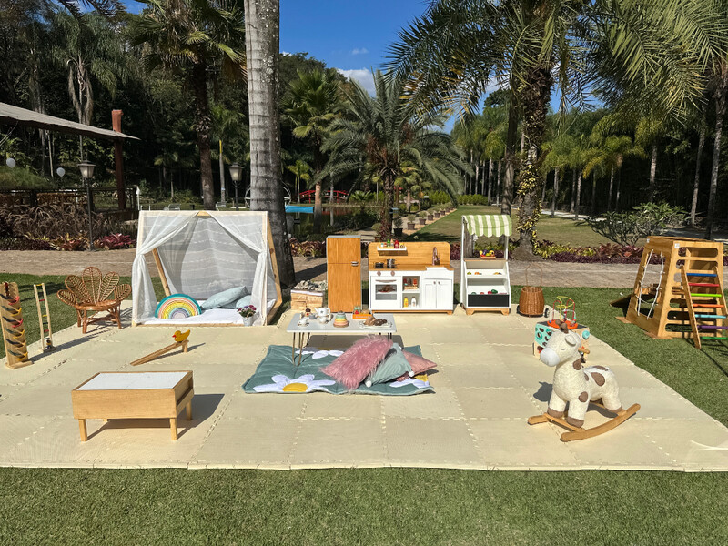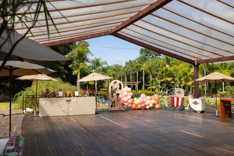 Jardins e deck de madeira